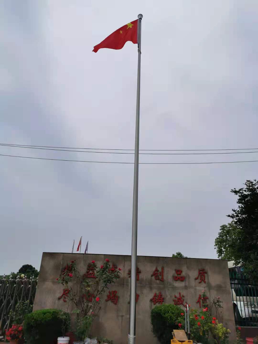安徽佳樂建設(shè)機(jī)械有限公司新安裝1支12米不銹鋼錐形旗桿,此次左尚金屬安徽耀龍為安徽佳樂建設(shè)機(jī)械有限公司生產(chǎn)的旗桿為優(yōu)質(zhì)不銹鋼制造,旗桿錐形挺拔高大,是錐形外置式的旗桿,內(nèi)藏不銹鋼繩,旗桿外無旗繩,免去旗桿與旗繩碰撞產(chǎn)生刮痕,從而可能導(dǎo)致桿體易生銹。