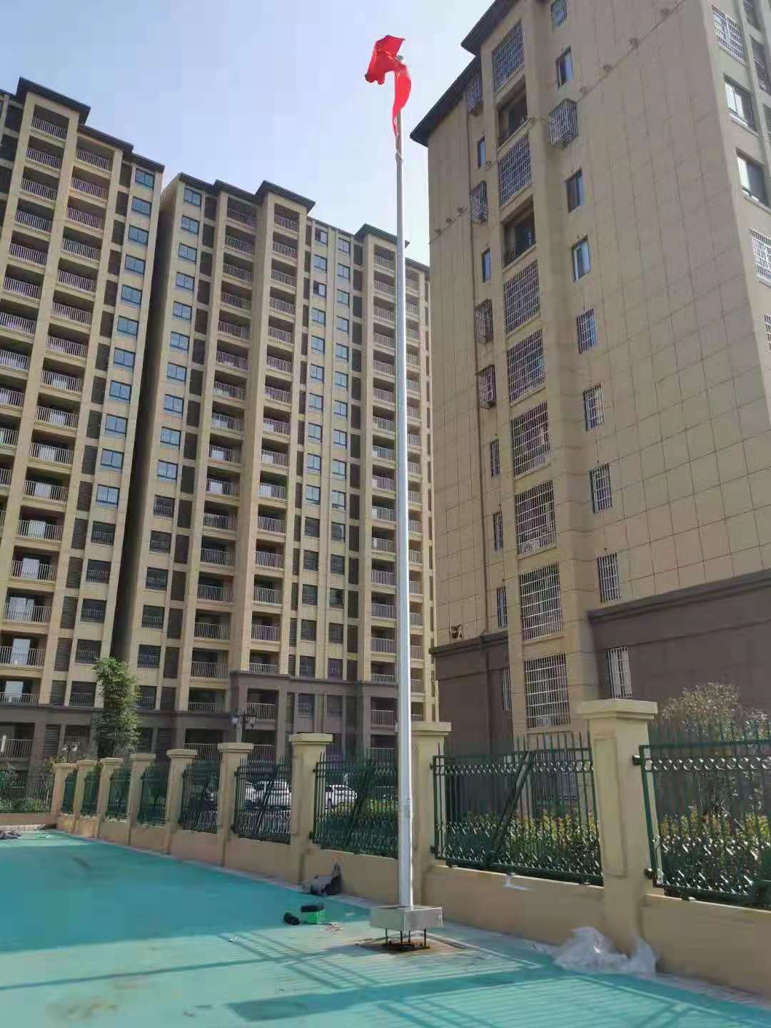 明光市趙府家園幼兒園1支12米錐形旗桿,此次左尚金屬安徽耀龍為明光市趙府家園幼兒園生產的旗桿為優質不銹鋼制造,旗桿錐形挺拔高大,是錐形外置式的旗桿,內藏不銹鋼繩,旗桿外無旗繩,免去旗桿與旗繩碰撞產生刮痕,從而可能導致桿體易生銹。