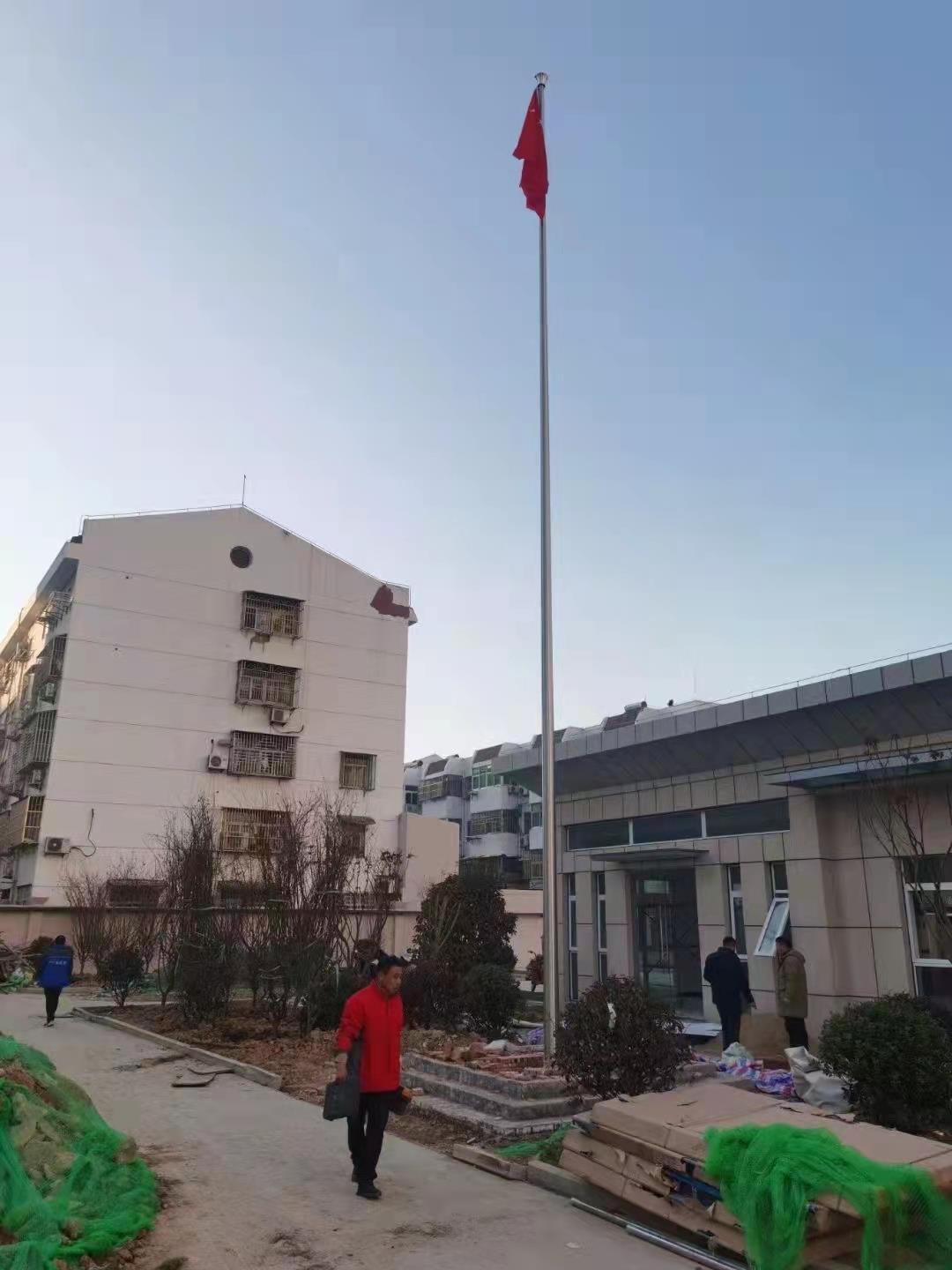 宿州市埇橋區(qū)三里灣派出所15米不銹鋼錐形旗桿,此次左尚金屬安徽耀龍為宿州市埇橋區(qū)三里灣派出所生產(chǎn)的旗桿為優(yōu)質(zhì)不銹鋼制造,旗桿錐形挺拔高大,是錐形外置式的旗桿,內(nèi)藏不銹鋼繩,旗桿外無旗繩,免去旗桿與旗繩碰撞產(chǎn)生刮痕,從而可能導(dǎo)致桿體易生銹。